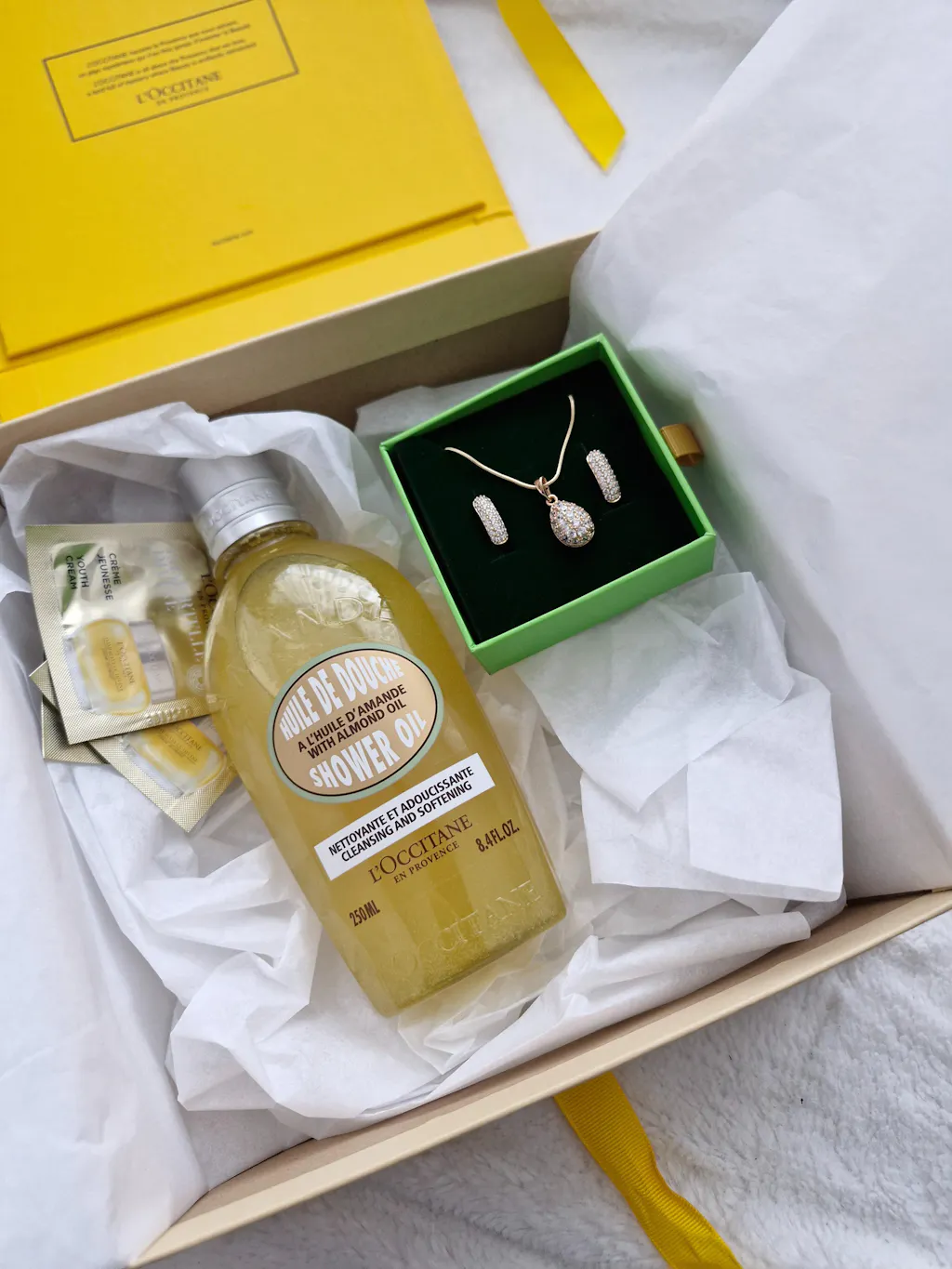 Paldies, patiešām ļoti vērtīgs komplekts, sākot no lieliskā iepakojuma un beidzot ar superīgu rotu komplektu un dāvaniņu no L'Occitane!