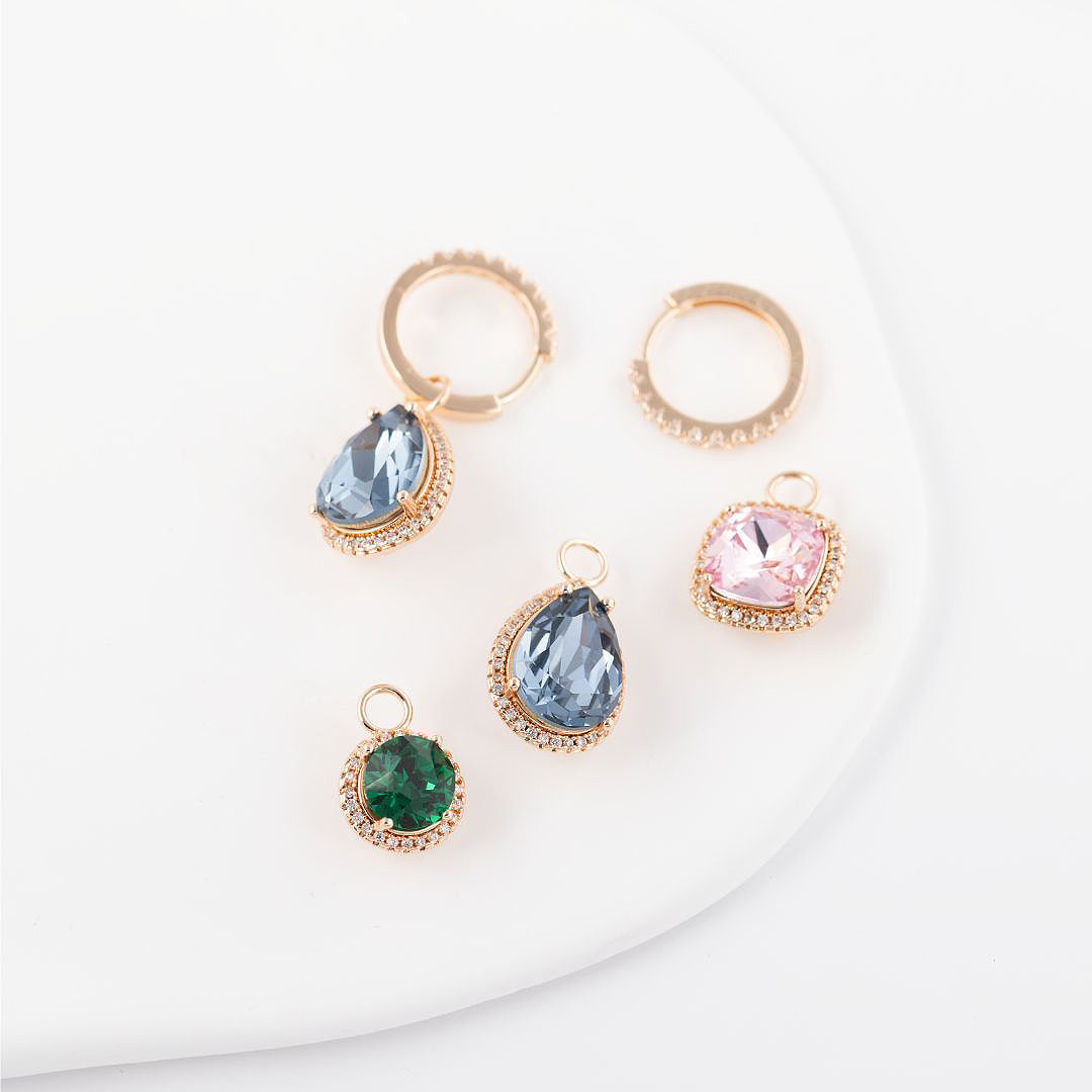Antialerģiskas un ūdensizturīgās rotas ar smalkiem un mirdzošiem kristāliem. Auskariņus vari nēsāt dažādos veidos, ar vai bez piekariņiem.